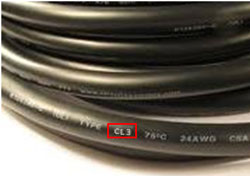 rated. A CL rating on a cable (CL2 up to 150 volts, CL3 up to 300 volts) means these cables have a slow burning outer jacket that should meet the fire