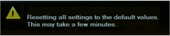 ‘SETUP’. 'Resetting all settings to default values...' is displayed on your