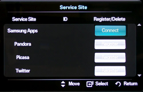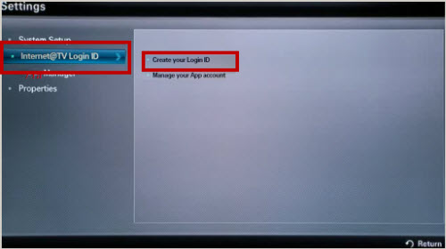 create an Internet@TV ID and use services such as Samsung Apps, Pandora,
