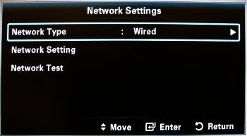 the ▲ and ▼ arrows to select Network and then press Enter.