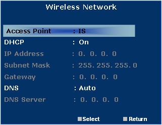 to Wireless Network and press Enter. Access Point is highlighted.