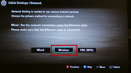 the ◀ and ▶ arrows on the Blu-ray remote, move to Wireless and