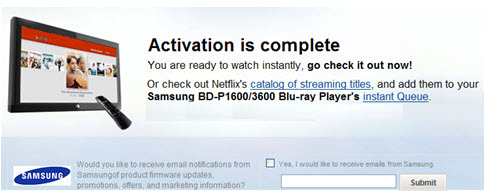 1. The last screen appears confirming the activation is complete. Your Blu-ray player will list your Netflix Instant Queue. Scroll through and select a movie to stream. The error will no longer appear.