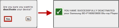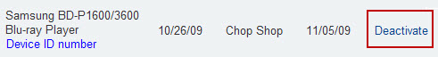 1. A list appears displaying your Netflix ready devices including your Samsung Blu-ray player. Click Deactivate on the far right.