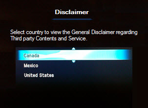 1. Using your Blu-ray remote, press the B button to select Netflix, the Disclaimer screen appears. Select your country, and then press Enter on your Blu-ray remote. This is followed by a series of about 9 setup screens detailing the terms of the disclaimer in several different languages. Click Next on each of the screens.