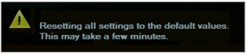 ‘SETUP’. 'Resetting all settings to default values...' is displayed on your