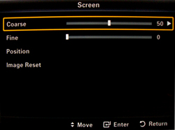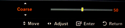 selecting the coarse option use the ◀ and ▶ buttons to make adjustments. After