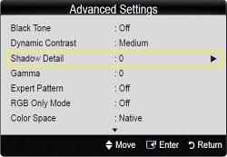 the ▲ or ▼ to select "Shadow Detail" option and then press ENTER.