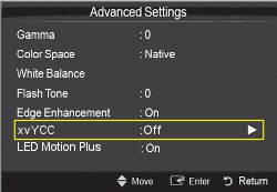 the ▲ or ▼ to select the "xvYCC" option, and then press ENTER.