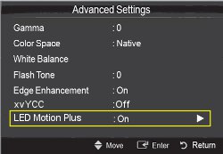 the ▲ or ▼ to select the "LED Motion Plus" option, and then press ENTER.