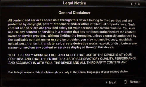 Legal Notice for the TV's third-party application is a general disclaimer that