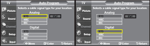 STD, HRC, or IRC, and then press ENTER. Repeat for digital channels.