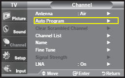 press the ▼ arrow to select the Channel Menu, and then press ENTER.