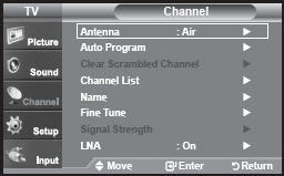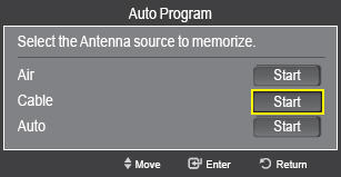 ENTER. If you selected Air, continue to Step 7. If you selected Cable,