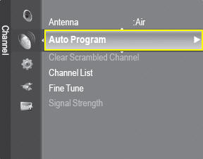press the ▼ arrow to select the Channel Menu, and then press ENTER.