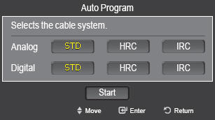 STD, HRC, or IRC, and then press ENTER. Repeat for digital channels.
