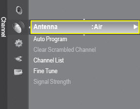 exit the menu and then press [Source], one or more times, until AIR or CABLE