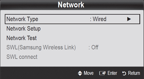 Network Type is set to Wireless, select Network Type, and then select Wired.