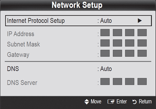 users will select Auto for Internet Protocol Setup and DNS. If your network