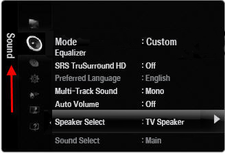 the ▲ or ▼ arrow to select the "Speaker Select". If "Speaker Select"