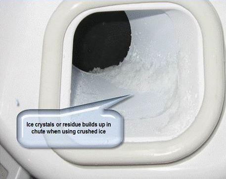 - When your fridge dispenses crushed ice, there may be a residual amount of ice pieces remaining in the cutting blades, in the ice bucket, and in the ice chute path.