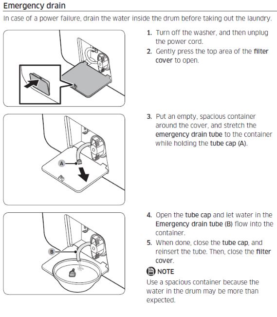 not draining or shows a 5E/5C error code, ask customer to clean the drain filter