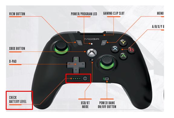 controller that displays the battery's charge level.