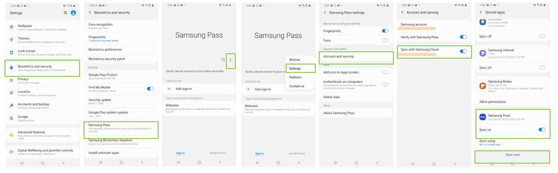 turned on for Samsung Pass. From your device settings, go to Accounts and backup
