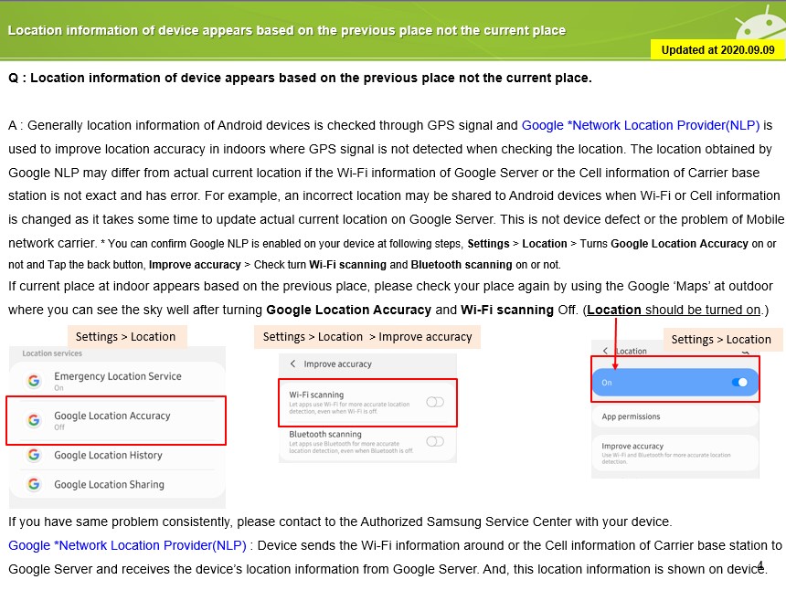 | Home > Network & Connectivity > Location information of device appears based on the previous place not the current place |
