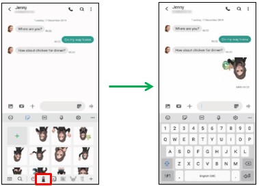 To delete My Emoji stickers, on the Samsung keyboard, tap    ,