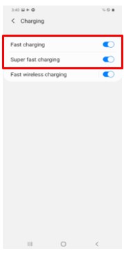 app, tap Device care > Battery > Charging, and then tap the Super fast charging