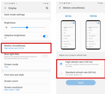 to 60Hz when I set the Motion smoothness for screen refresh rate to 120Hz.