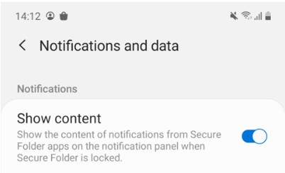 panel when Secure Folder is locked, go to Settings of Secure Folder > Notifications