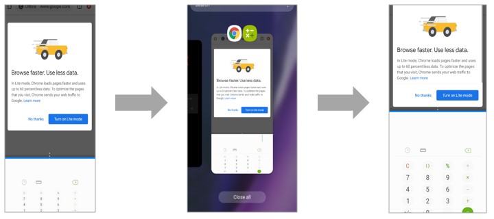 task consisting of split screens from the Recents menu,