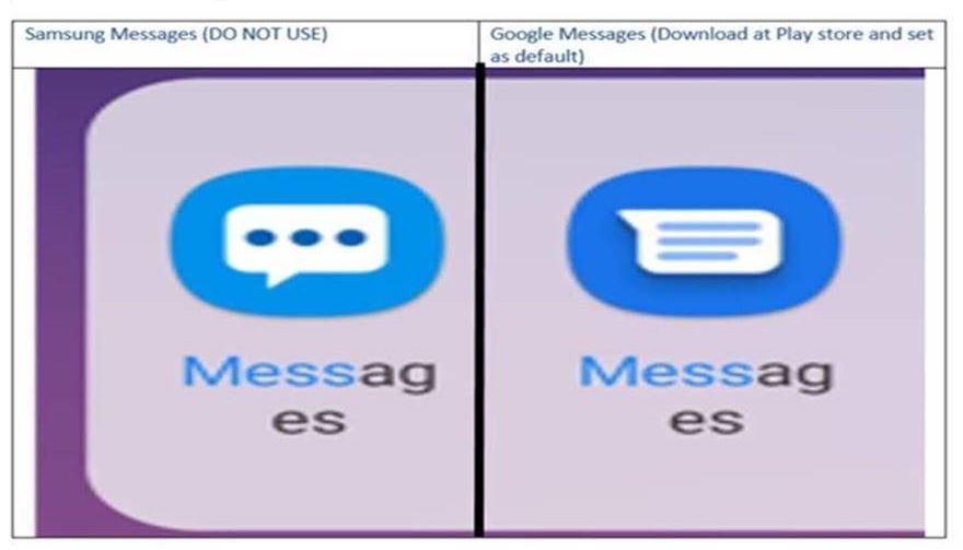 - Recommend to use Google Messages instead of preloaded Samsung Messages