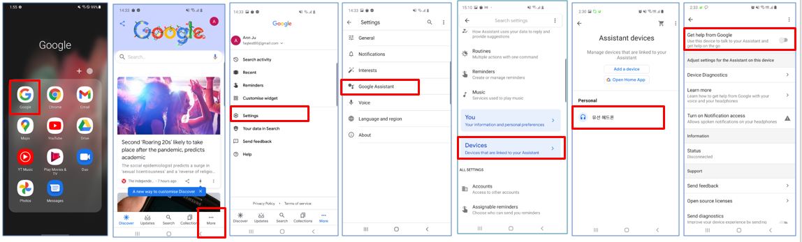 - Tap More > Settings > Google Assistant > Devices (linked to your Assistant).