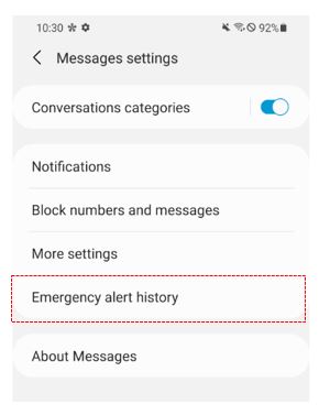 emergency alerts, go to Message Settings > Emergency Alert History, where