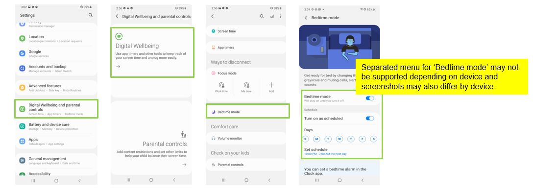 - Turn on as scheduled : Set the device to turn on the bedtime mode