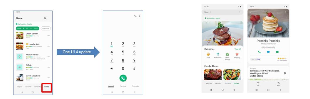 Why did the Places tab disappear from my Phone app after updating to Android 12 (One UI 4)?