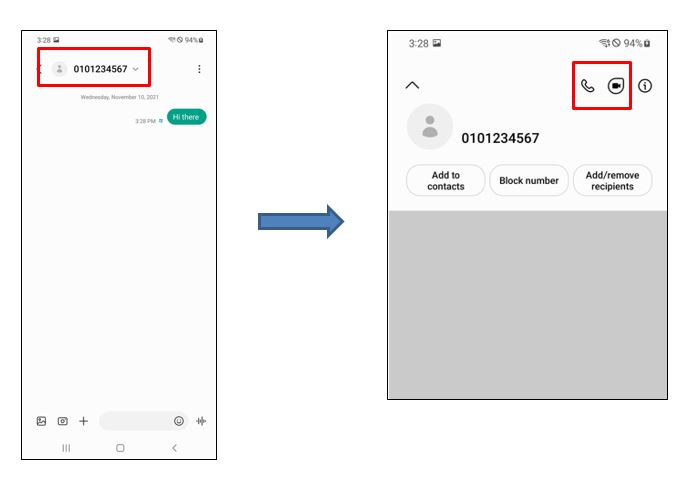 With One UI 4 (running on Android S OS), there has been a change in the layout of your messaging app. To find the call button, simply tap on the contact's name or phone number at the top of the screen. This will expand the title section, revealing the hidden voice and video call icons.