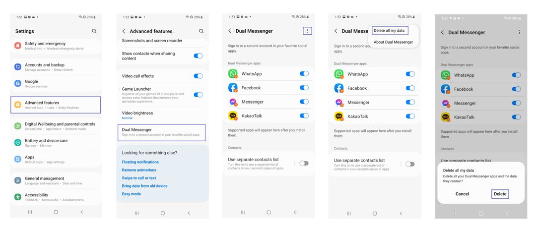data associated with Dual Messenger, which might help restore proper app functionality.