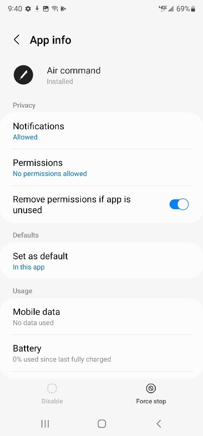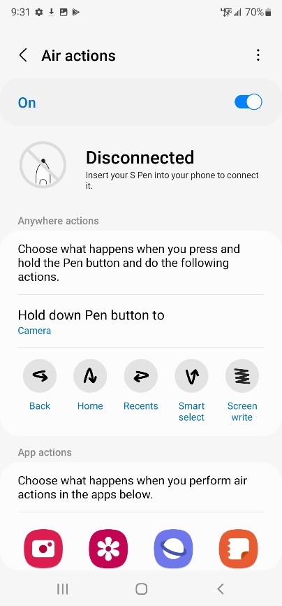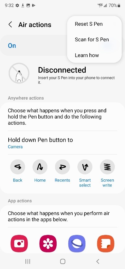 - Settings > Apps > Air command