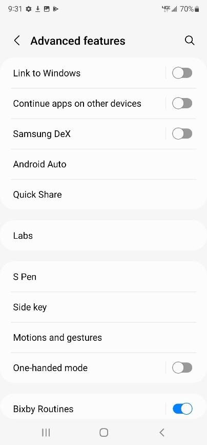 - Settings > Advanced features >
