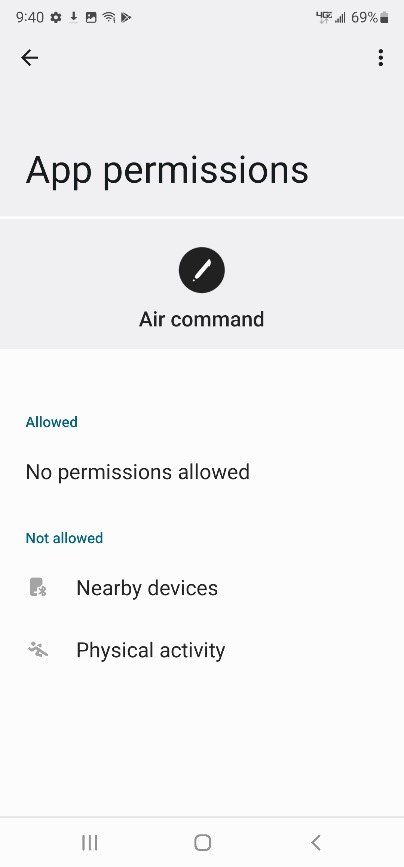 'Nearby devices' and 'Physical activity' and connect the S pen again.
