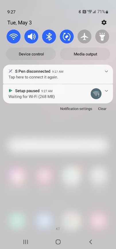 there is a notification that the S pen has been disconnected in the notification