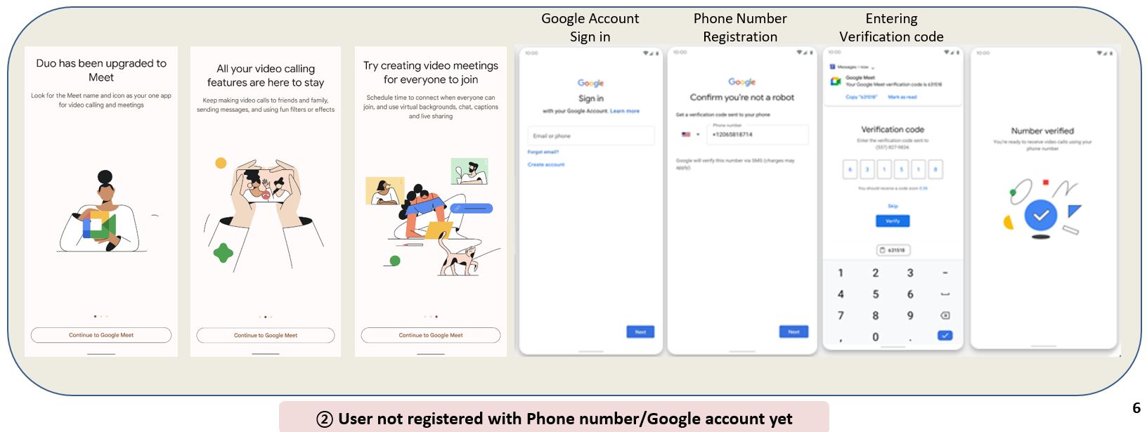 - User not registered with Phone number/Google account yet