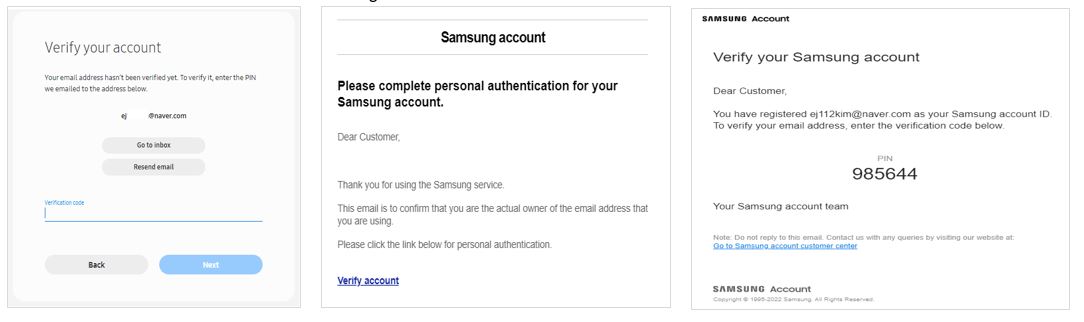during the authentication process when registering or resetting my Samsung account