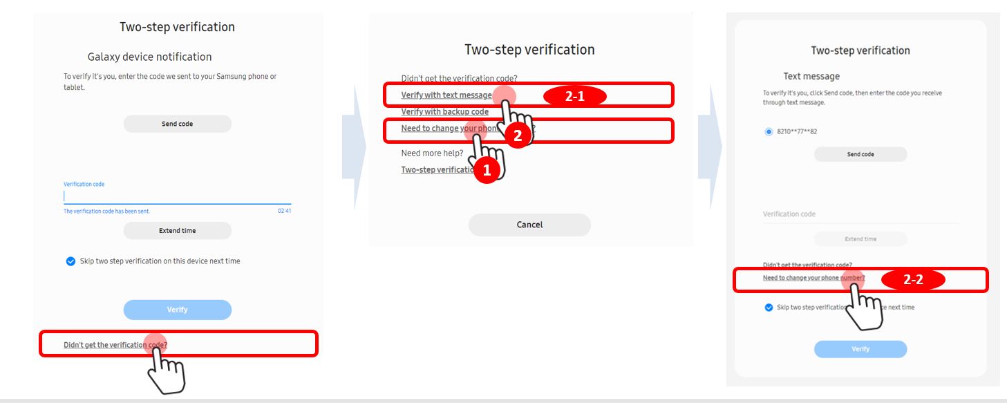code?' (bottom of typing screen with verification code) > 'Verify with text