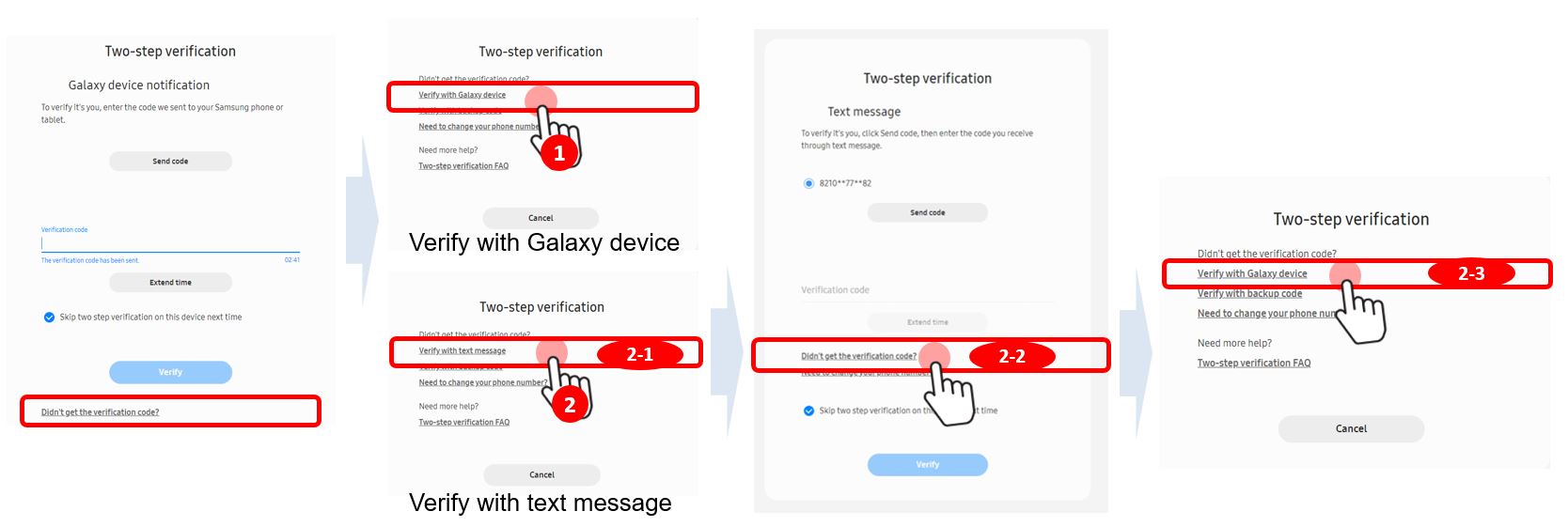 both with Verify with text message and Verify with Galaxy device, it shows 'Verify