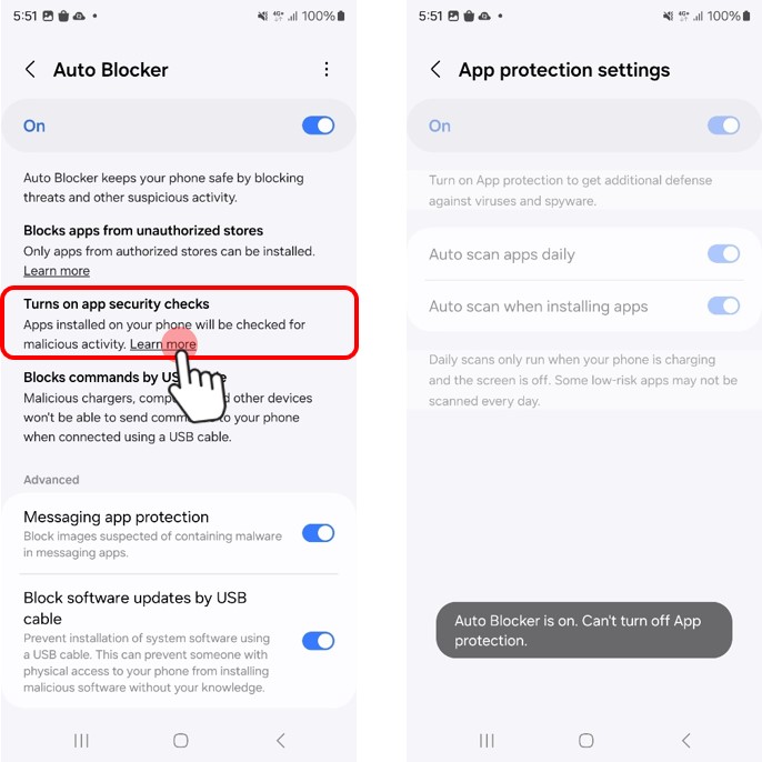 Protection' option found in the Device Care menu. Once the Auto Blocker is turned